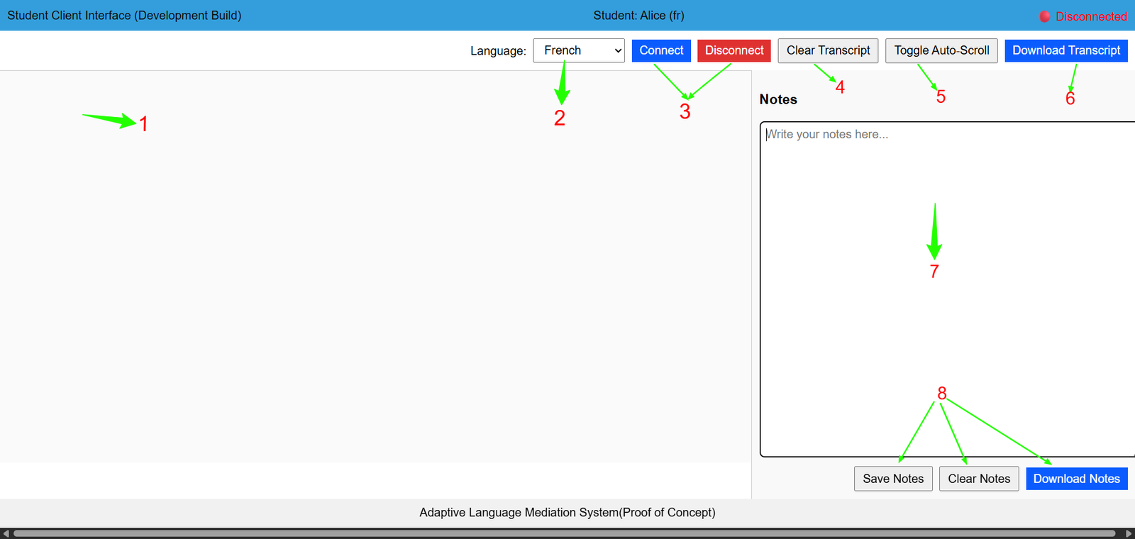 Resets the transcription display without affecting system configuration. Facilitates segmented learning cycles and focused discourse analysis. Supports iterative reflection and task-based instructional design.